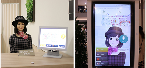 施設内には、ココロの人体型ロボット「アクトロイド」を国内商業施設で初めて導入した。ティファナ・ドットコムの人工知能(AI)会話型システム「KIZUNA(絆)」と連携した精度の高い会話や、日本語、英語、中国語、韓国語の4か国語で施設の案内ができる。石渡所長は「ロボットにできることはロボットに任せて、人には人にしかできない仕事をこなすことで、業務の効率化を図る」と説明した。