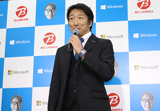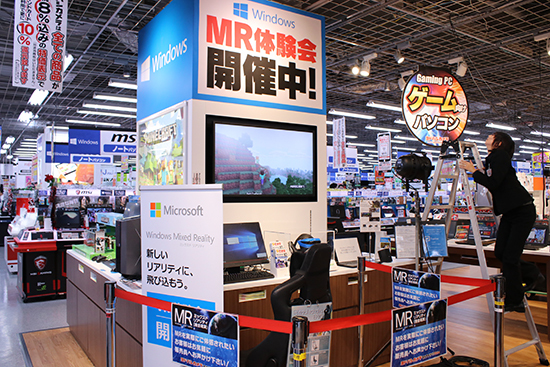 就任披露式が開催されたビックカメラ有楽町店では、「My First PC」コーナーのほか、仮想世界に現実世界の情報を取り込み、現実世界と仮想世界を融合させた複合現実「Windows MR」の体験コーナーを設置。Windows 10を搭載した「ヒーローPC」も専用コーナーで展示している。