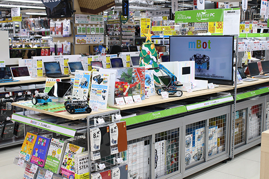 両店舗のPC売り場では、設置している内容だけでなく、客層も似通っていた。「家族での来店が増えてきた」(本多マネージャ)、「子ども向けのPCにもハイスペックな商品を求めるケースがみられる」(佐藤店長)といった実感もあるという。2020年から小学校教育で始まるプログラミングの必修化に向け、PCへの注目度も高まっているようだ。