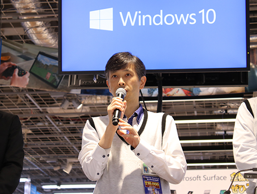 新CM発表会の開催されたヨドバシAkibaでも「My First PC」コーナー、MR体験コーナー、Windows 10搭載PCコーナーを設置している。ヨドバシAkibaパソコン専門チームマーケット・イノベータ―の本多一成マネージャは「平日は20人、休日はその倍の人がMR体験コーナーを訪れる。20代から30代が中心で、訪日客も興味を持っている。これらをきっかけに、要の商品でもあるWindows PCの真価を、ほかにはない大きなスタジアムで消費者に訴えていきたい」と意気込みを語った。