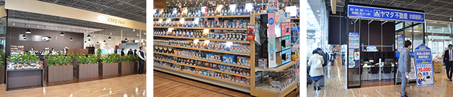 1階入口にはカフェ、消耗品コーナー、不動産事業の窓口を配置