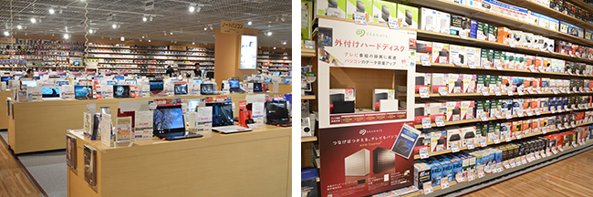 ゆとりのある家電売り場 大型什器が存在感を発揮