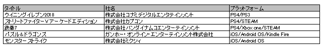 2018年の闘会議でプロライセンスを発行する予定のタイトル