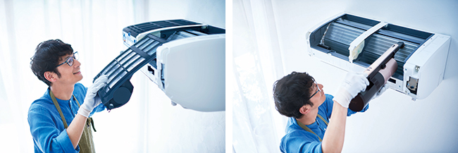 フラップを開いて通風路を掃除。さらにZシリーズは、熱交換器を掃除機などでしっかり掃除できる
