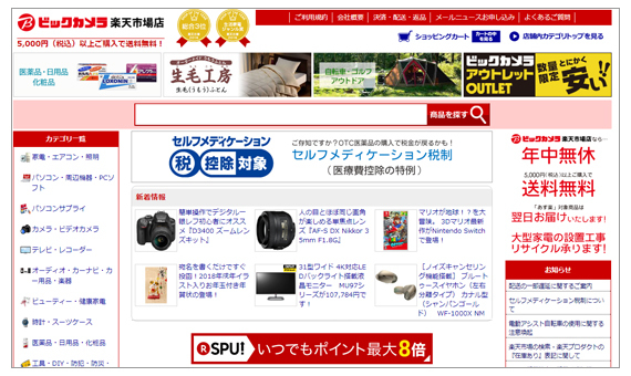 現在出店中の「ビックカメラ楽天市場店」