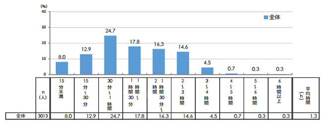 「平日(通勤/通学する日)」に<家または学校・勤務先の外>にいる時間の中で「移動」に費やす時間