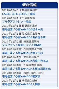 最近の出店状況(ヤマダ電機のWebサイトより)