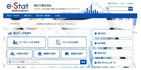 総務省統計局は、「政府統計の統合窓口(e-Stat)」を刷新し、2018年1月4日から新たに運用を開始する。なお、12月11日からプレサイトの提供を開始している。