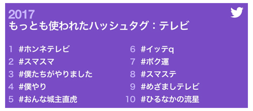 テレビ関連で、2017年に多く使われたハッシュタグ トップ10