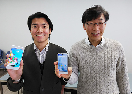 シャープの通信事業本部 パーソナル通信事業部 商品企画部の 高木健次部長(右)と、