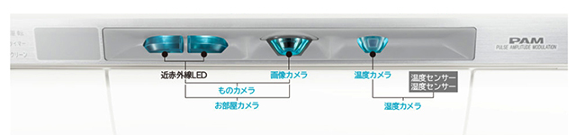 16年は「お部屋カメラ」を搭載。「ものカメラ」が下方向を検知する近赤外線LEDであるのに対し、「お部屋カメラ」は水平や上方向を検知する近赤外線LED。畳やフローリング、カーペットなど床の素材のほか、キッチンの下がり壁、窓の位置や大きさ、吊戸棚まで把握できる。