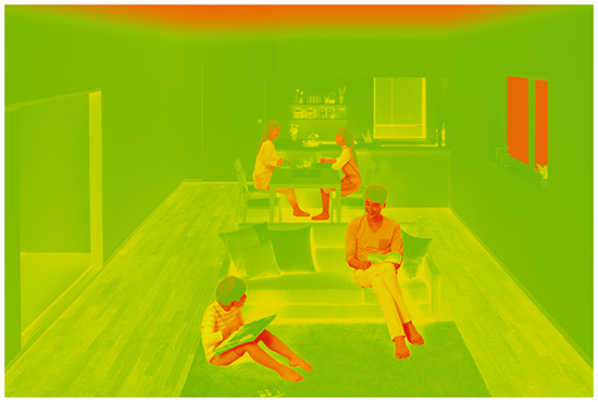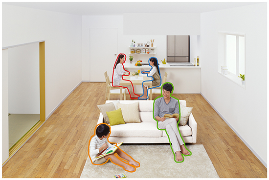 「くらしカメラ」が大きく進化したのは、15年に搭載した「ものカメラ」だ。近赤外線LEDで床などの下方向の温度を認識できる。これと「画像カメラ」を組み合わせることで、テーブルや家具、ソファーの位置や形状、脚など気流の通り道が把握できるようになった。「ソファーでも脚があって下に空間があるタイプは気流が抜けるが、下に空間がないタイプは気流が通らない。気流の通り道を見つけて、人の足元や部屋全体を快適にする」と木村部長は語る。