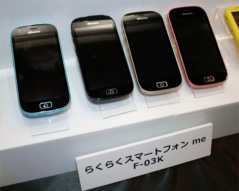 ドコモの2017-2018冬春モデル発表会で展示されていた「らくらくスマートフォン me」のモック
