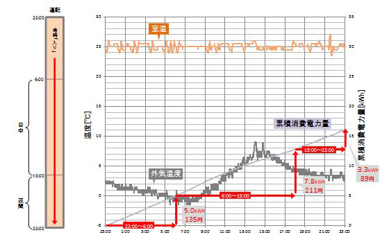 暖房を「こまめに入り切り」して運転した場合の実験結果