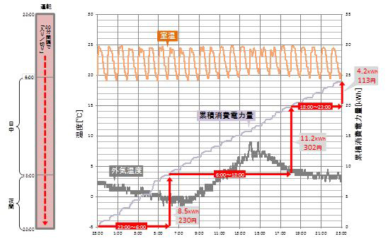 24時間暖房を「つけっぱなし」で運転した場合の実験結果