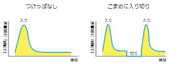 「つけっぱなし」と「こまめに入り切り」の消費電力量の比較
