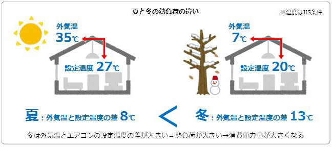 エアコンの暖房運転は冷房運転と比べると消費電力量が大きいが、「つけっぱなし」だと部屋の躯体(天井、床、壁)が蓄熱されているため、室温にほとんど変化がなく、結果的に消費電力量を抑えられることになる。