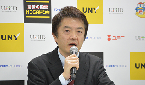 内覧会前に開催された説明会で、ユニーの佐古則男社長は「GMSは70年代の需要が供給を上回っていた時代にうまくいっていた業態。少子高齢化に伴う社会環境の変化に対応していかなければいけない」と語り、新業態店舗のキーワードとして、安さ・便利さ・楽しさを挙げた。特に強調したのが、ドンキが得意とするエンタテイメント性の高い売り場が演出する楽しさだ。「リアルの実店舗がネットに負けずに活力を維持するために欠かせない。お客様により近づき、地域に長く根ざす店舗に育て上げたい」(佐古社長)。