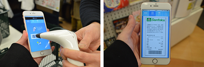 会計時に専用アプリのユーザーバーコードを読み込むことで、電子レシートが画面上に表示される