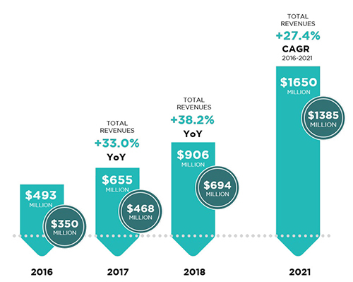 eスポーツ市場に関して調査するオランダのNewzooは2月21日、2018年のeスポーツ市場は世界で9億5660万ドル(前年比38%増)になるとの予測値を発表した。20年には14億ドル、21年には16億5000万ドルまで成長する見通し。