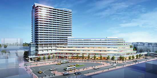 神奈川県横浜市に建設中の複合ビル(イメージパース)。JR大船駅北口(笠間口)に歩行者デッキで直結し、