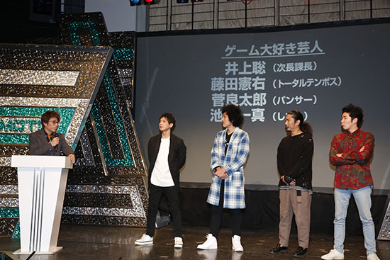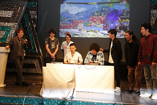 対戦に使用したのは、対戦型格闘ゲーム「ストリートファイターV」(カプコン)。「よしもとゲーミング」のジョビン選手に、井上聡(次長課長)さん、藤田憲右(トータルテンボス)さん、池田一真(しずる)さん、菅良太郎(パンサー)さんが一人ずつ挑んだ。田村淳(ロンドンブーツ1号2号)が司会を務めた。