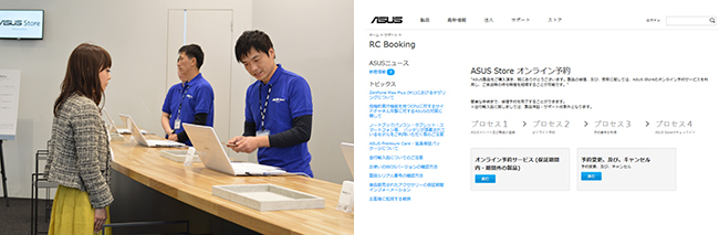 まず、「サポート」についてだが、対面のサポート窓口は4箇所。15分を1コマとして、専任スタッフが困りごとをヒアリングし、最適な対処方法を提案する。対象となるデバイスは、同社のノートPC、スマートフォン、タブレット、スマートウォッチ(ZenWatch)。来店客はWebで事前にサポートの時間帯を予約することで、待ち時間なくスムーズにサポートを受けることができる。もちろん予約なしで来店して、その場で空いている枠でサポートを申し込むことが可能だ。