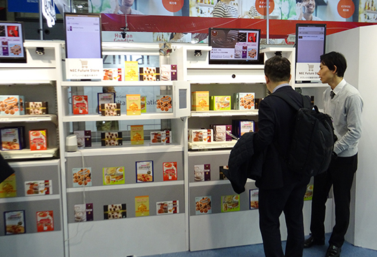 RFID(無線ICタグ)付の商品を取ると自動的にレジに登録され、顧客の顔を認識して決済が完了する