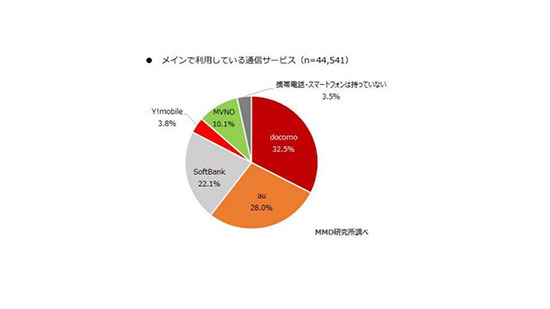 MMD研究所は3月12日、15~69歳の男女4万4541人を対象に今年2月16日~22日の期間で「2018年3月格安SIMサービスの利用動向調査」を実施したと発表した。メイン利用の携帯電話・スマートフォンの通信事業者を聞いたところ、「MVNO」が10.1%となり、前回調査(2017年3月)と比較すると2.7ポイント増えたという。