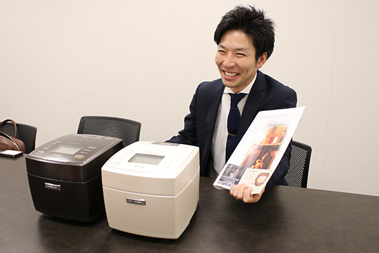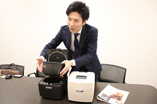 三菱電機ホーム機器 営業部家電営業課の八百幸史晃主事は「内釜は、純度99.9%の炭素材料を熟練の職人が手作業で削り出して、約100日かけて完成させる。業界で本炭釜を使用しているのは当社だけ。家族や親せき、遊びに来た友人との会話も弾むはず」と期待する。