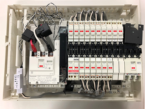 分電盤に取り付けられた「エネルギーセンサー」(左下)