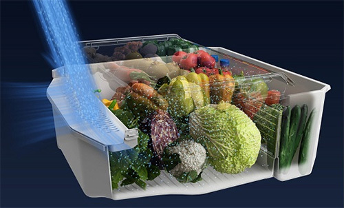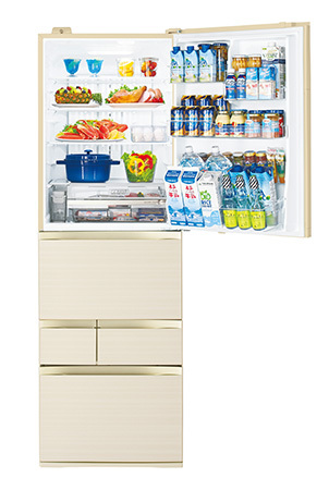 これによって、温度変化が少なく野菜のうるおいを長く保てる野菜室を実現していたが、新製品では風を直接当てずに水蒸気だけを送り込む「ミストチャージユニット」を追加し、野菜の水分減少率をさらに抑えられるようになった。大容量かつ長期間鮮度を保てる冷蔵庫を提供することで、買い物の回数を減らしたいという「省手間」ニーズに対応する。