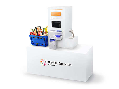 同社は、タブレット端末用の店舗支援アプリ「Orange Operation」を開発しており、これと自動釣銭機、レシートプリンタ、バーコードスキャナなどを組み合わせることで、小売店を訪れた顧客が自分で会計できる「セルフレジ」のシステムをつくり上げた。決済方法としては現金、クレジットカード、電子マネーに対応する。
