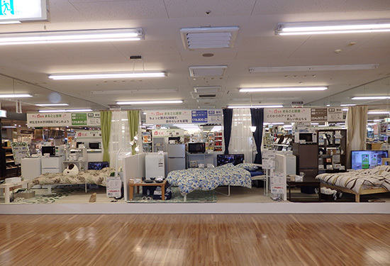土井一宣店長は「インテリアコーディネーターの資格をもつ社員を数名配置しているので、1階の家具やリフォームをきっかけに2階の家電を案内したり、逆に2階の家電の買い替えをきっかけにリフォームを提案したり、お客様が自在に行き来できるようにしている」と語る。