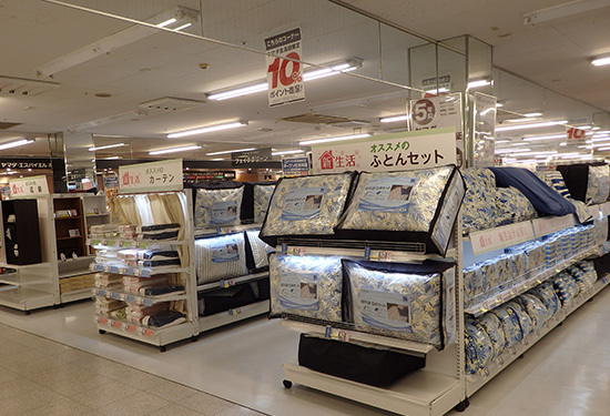 横浜市金沢区富岡東に立地する横浜金沢店は、JR京浜東北線の新杉田駅と京浜急行線の金沢八景駅を結ぶ「横浜シーサイドライン」の鳥浜駅を出てすぐにある。周辺は集合住宅が立ち並び、近くには横浜ベイサイドマリーナや三井アウトレットパーク横浜ベイサイドがあり、休日は家族連れのショッピング客などで賑わう。同店の売り場面積は6933m2で、1階はリフォームや家具、寝具、日用雑貨、酒、菓子、化粧品、カフェなどで構成され、2階は家電を展示する。ざっくり分けると、1階は非家電、2階は家電というフロア構成だ。