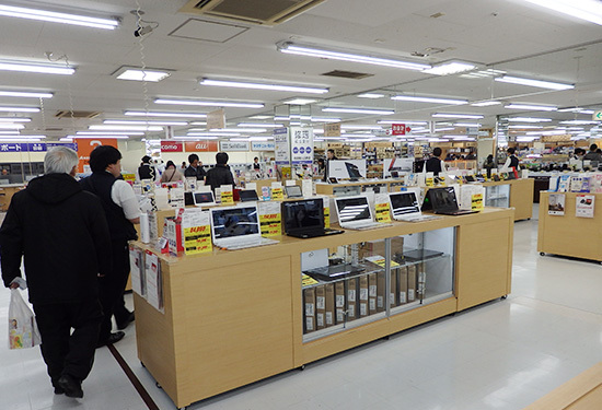 改装前のテックランド横浜金沢店は、1階が業務用スーパーの「肉のハナマサ」、2階の一部にゲームセンターが入っていた。新店ではこれらのテナントがなくなったため、店内は広い通路を確保したり、什器の高さも低くしたりするなどして、ゆっくりと回遊できるようにした。家電を含むアイテム数は従来よりも増えたという。