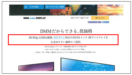DMM.comの広告表示。リフレッシュレート「120Hz駆動」は、「60Hz駆動」の誤りだった