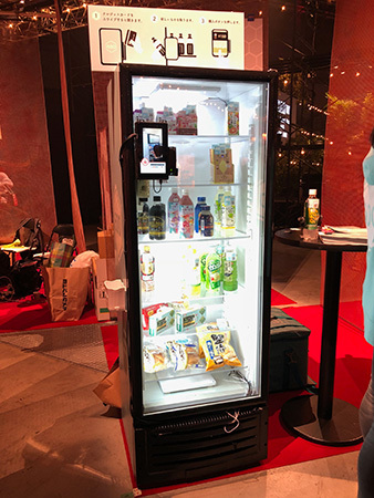 2017年6月に創業したベンチャーの600(社名)が、オフィス内で食料品や日用品を自動販売する「無人コンビニ」事業を展開している。冷蔵ケースとRFID(無線ICタグ)、決済端末を組み合わせた販売機を企業内に設置し、オフィスで必要とされるさまざまな小型商品を無人で提供する。3月28日・29日に東京ビッグサイトで開催されたスタートアップ企業のイベント「Slush Tokyo 2018」でデモ機を展示した。