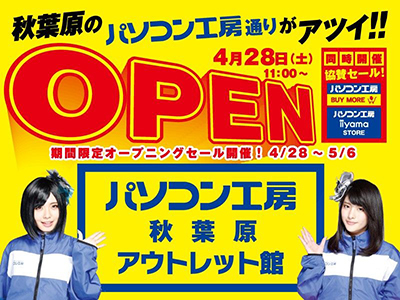 ユニットコムは、良品アウトレットを専門に取り扱う「パソコン工房 秋葉原アウトレット館」を4月28日に新規オープンする。ユニットコムにとっては、秋葉原地区で機能差別化した4番目の店舗に位置付けられる。