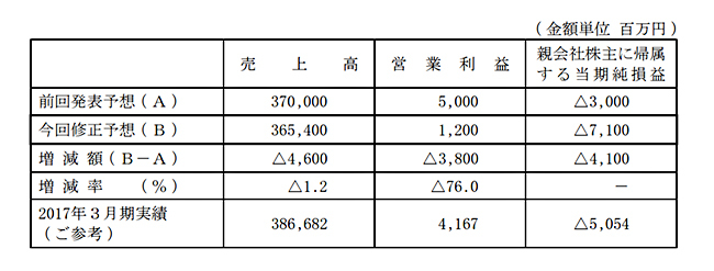 パイオニアは4月26日、2018年3月期(17年4月~18年3月)の連結業績予想を下方修正した。売上高は2月に発表した予想からさらに460億円下回る3654億円、営業利益は12億円、当期純損益は71億円の赤字を見込み、前期比で減収減益となる。カーナビ、カーオーディオなどのカーエレクトロニクス事業が不調だった。