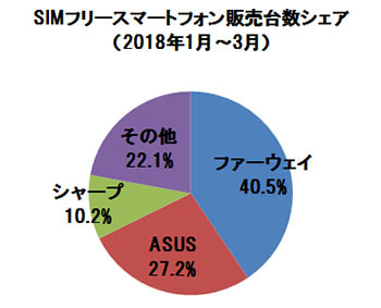 SIMフリースマホ18年1Qは前年割れ、2強のシェアさらに拡大