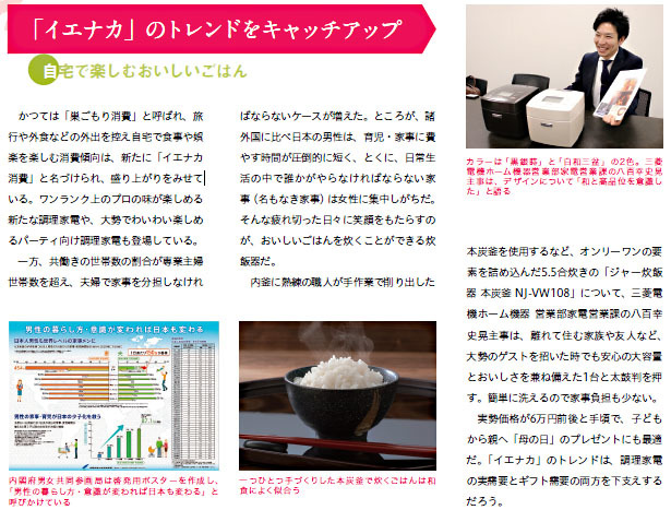 時短効果の高い高機能家電に加え、「Amazon フレッシュ」や「Prime Now」といったオンラインで注文する生鮮食品の個別宅配サービス・短時間配送サービスなども登場し、子どもと配偶者にすべての時間を捧げる主婦=家事専業労働者を前提とした社会は、今や過去のものになりつつある。女性も男性も、働き盛りの世代は、誰もが仕事と家事の両立のため時間に追われているとの前提で接客するべきだろう。(BCN・嵯峨野 芙美)