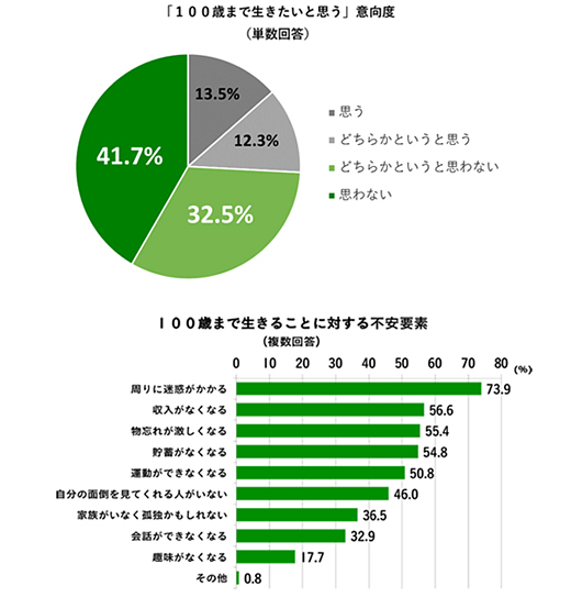 富士フイルムが20~80代の男女600名を対象に実施した「日本人の長生きに対する意識調査」によると、国内外で「人生100年時代」が提唱されているなか、74.2%が「100歳までは生きたくない」と回答し、100歳まで生きることへの不安要素として「周りに迷惑がかかる」(73.9%)がトップに挙がるなど、日本人の長生きに対する不安が垣間見える結果となった。