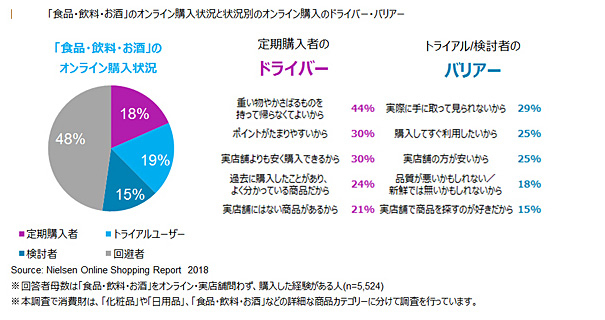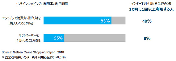 視聴行動分析サービスを提供するニールセン デジタルは、消費者のオンラインショッピングの利用動向調査「Nielsen Online Shopping Report 2018」をもとに、急増しているといわれるオンラインショッピングの利用状況を分析した。