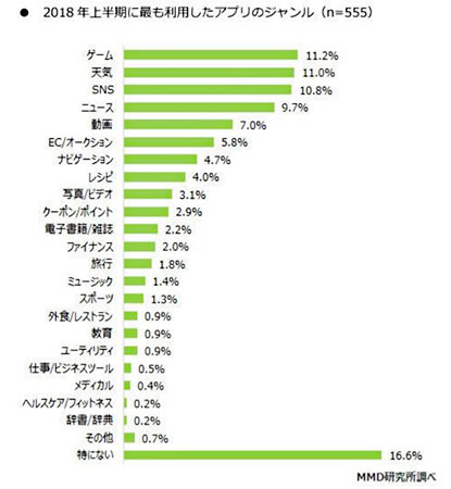 2018年上半期に最も利用したスマホアプリのジャンルは? MMD研究所の調査