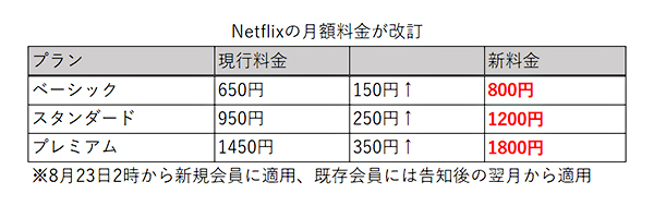 動画配信サービスのユーザー獲得競争が次の段階にシフトしつつある。8月23日にNetflixが月額料金の改定を発表。2015年秋の日本市場参入以来、初となる値上げに踏み切った。ネガティブに受け止められているのかと思いきや、ネットでは「今までが安すぎた」と理解を示す声もあがっているようだ。