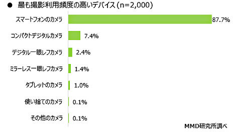 MMD研究所は、スマートフォン(スマホ)のカメラ機能を利用したことがあると回答した15歳から69歳までの男女2000人を対象に「スマートフォンカメラの利用に関する調査」を8月10~12日の期間で実施した。