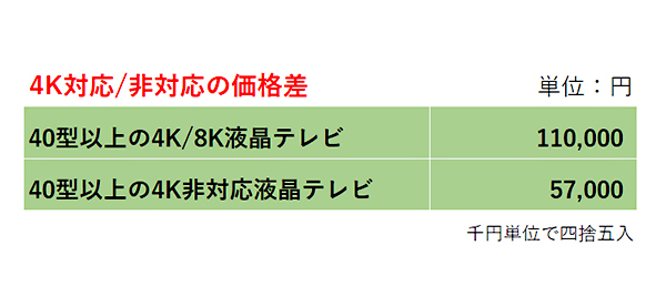 炊飯器同様、テレビも価格差が大きい。家電量販店の実売データを集計した「BCNランキング」によると、2018年8月の液晶テレビ全体の税別平均単価(千円単位)は6万5000円。40型以上の4K/8K対応機種(4K/8K液晶テレビ)は11万円だが、4K非対応機種なると5万7000円となり、解像度によって5万3000円もの開きがある。さらに、各社がプレミアラインに位置づける有機ELテレビの平均単価は、当初よりだいぶ下がったとはいえ、28万7000円と非常に高額だ。今後、4Kに続き、8Kテレビも登場すると、テレビの価格差はさらに広がるだろう。
