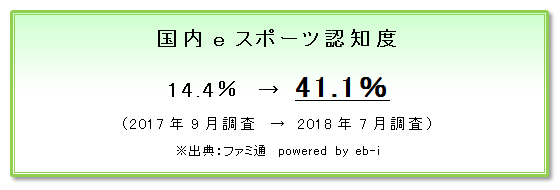 国内でeスポーツの認知度が急上昇している。ゲーム総合情報メディア「ファミ通」を手掛けるGzブレインは9月19日、国内のeスポーツ認知度は昨年の約3倍となる41.1%になったと発表した。