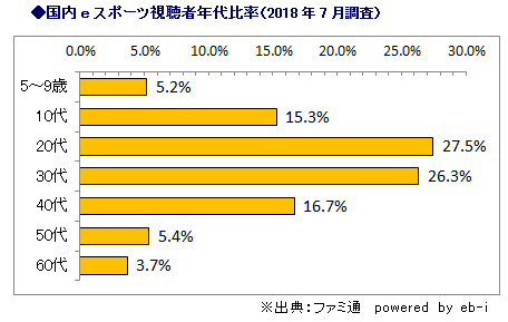 先述の数字は、エンターテインメント分野の消費動向調査「eb-i(Entertainment Business Insight)」を利用して、7月にインターネット上で実施した「国内eスポーツの実態調査」の結果。調査対象は、全国47都道府県に在住する5~69歳の男女約2万人だった。昨年9月に実施した前回の調査では、eスポーツ認知度は14.4%だった。